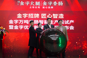 11月23號,由金字火腿主辦的“金字萬噸浙味香腸智能生產(chǎn)線試投產(chǎn)暨金字優(yōu)品新零售發(fā)布會”在浙江省農(nóng)博會上隆重舉行,這意味著金字火腿將全面發(fā)力新零售精準營銷,不斷開拓香腸等傳統(tǒng)肉制品千億市場。浙江省農(nóng)業(yè)廳、金華市相關(guān)領(lǐng)導、新零售行業(yè)精英出席了本次發(fā)布會,共同見證了這一盛況。在大咖云集的發(fā)布會現(xiàn)場,金字香腸獲得了大家的交口稱贊。對此,金字生產(chǎn)負責人告訴記者,近日試產(chǎn)的金字萬噸香腸智能生產(chǎn)線,是從德國引進的智能化香腸生產(chǎn)線,擁有完備的可追溯系統(tǒng)、智能化車間管理系統(tǒng),標準化生產(chǎn)將大幅提高生產(chǎn)效率,確保